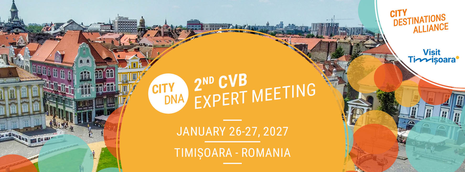 Join us for the 2nd CityDNA CVB Expert Meeting, an event created specifically for CVB professionals, that will be held in Timișoara on January 26-27, 2027.