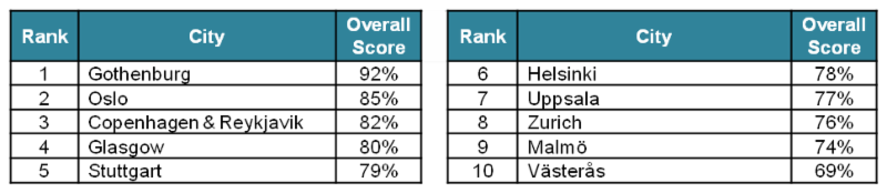 Listed below are the cities with the 10 highest overall scores. For the full list of cities and scores please click here.