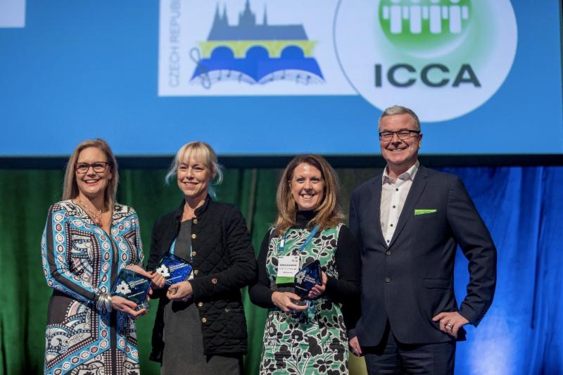 2017 Global Destination Sustainability Index Award Winners receive their trophies at the ICCA Congress in Prague. From Left: Nina Freysen-Pretorius – President of ICCA, Annika Hallman – Director of the Gothenburg Convention Bureau, Aileen Crawford – Head of Conventions at Glasgow Convention Bureau, and Martin Sirk – Ceo of ICCA.
