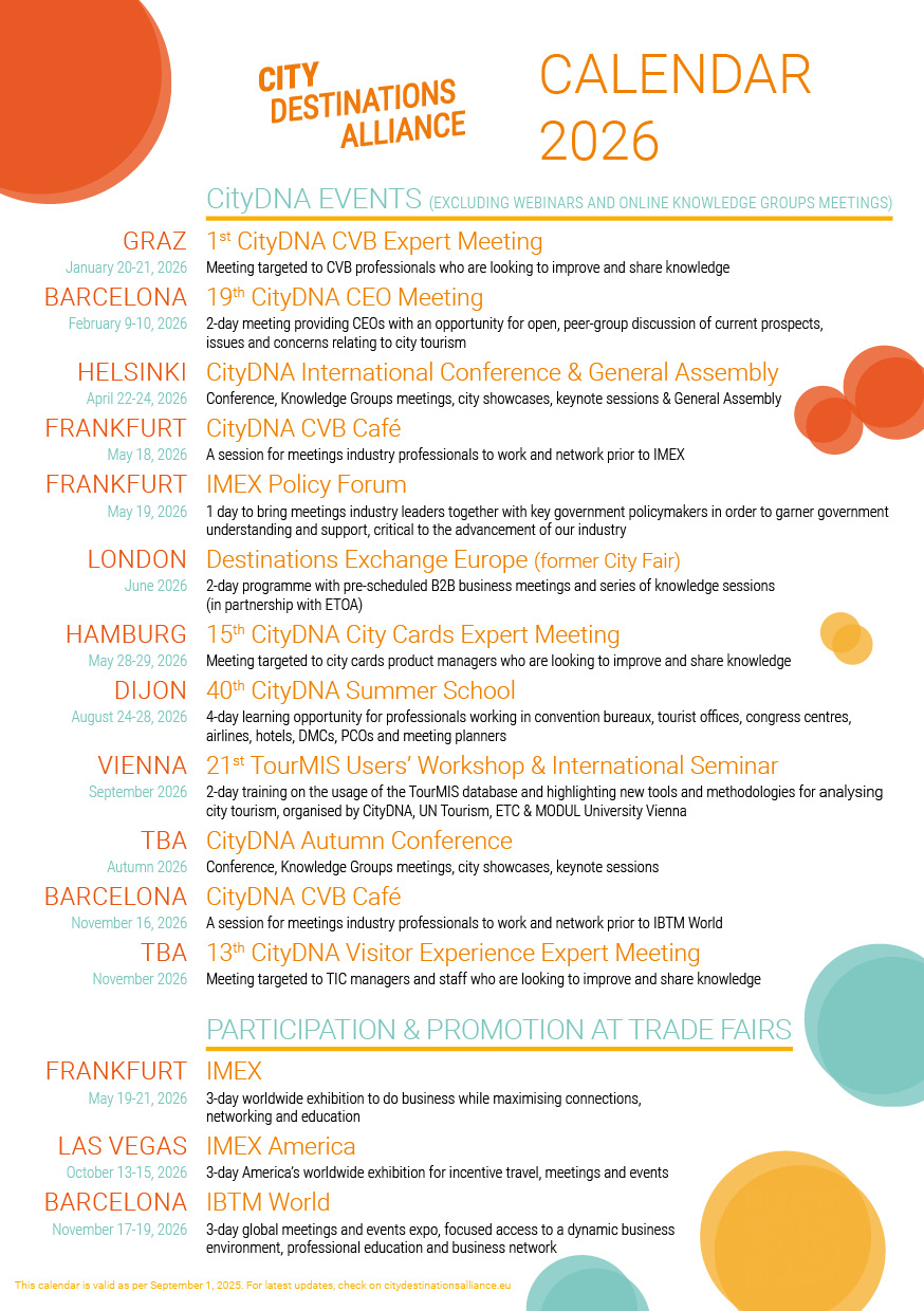 Thanks to all our partners for their contribution, both in knowledge and actively supporting City Destinations Alliance and its goals!